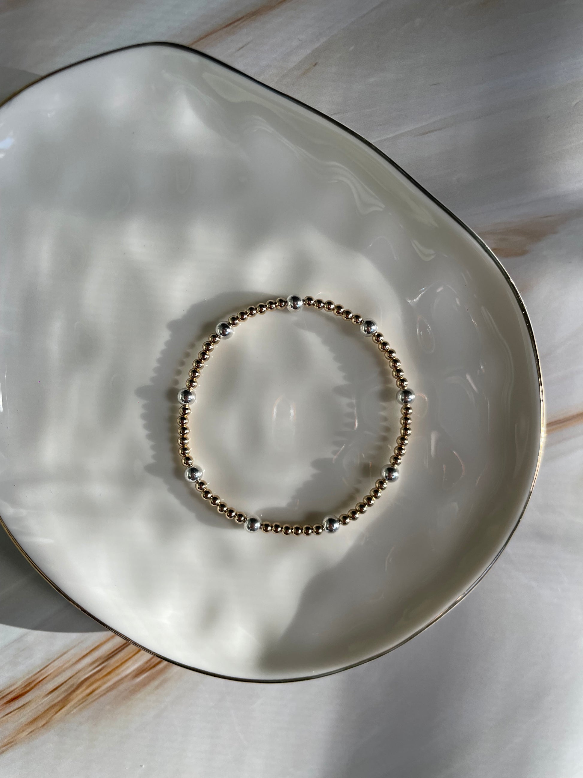 Can't decide whether you're a silver girlie or a gold girlie? Why not be both?! This delicate bracelet features both 14k gold filled and sterling silver beads as a perfect addition for those who love to mix their metals